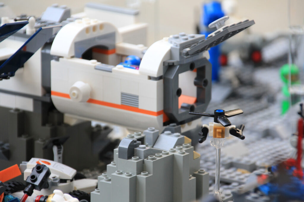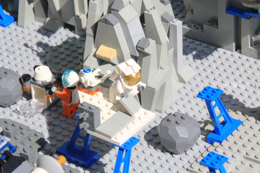 Los ging die ganze Geschichte nach der SteinCHenwelt 2019, nach der ich etwas in der Luft hing und nicht klar war, in welche Richtung ich weiter bauen sollte. Raumschiffe, Fahrzeuge, Basen usw hatte ich genug und wir sind auch etwas die Ideen ausgegangen. Also Grundidee für einen nächsten Schritt habe ich dann mit einer 48 x 48 Grundplatte experimentiert, auf der ich eine Landing Baseplate auf Stelzen stellte. Dieses Bild hatte ich schon seit einiger Zeit vor Augen und habe dann mal angefangen, etwas umzusetzen. Dann fing ich an, einige “Felsen” zu bauen, fing an, einige LURPS und BURPS zu verteilen und so etwas wie Felsen zu bauen, auf den Felsen kann dann eine Basis, es kamen weiter 48×48 Platten dazu, ich verbaute die neuste LEGO Raumstation (Set 60227) als Teil der neuen Basis …. Die Idee war im Prinzip, ein Diorama zu schaffen, in dem kleine Basen und Stationen auf einer felsigen / zerklüfteten Landschaften stehen, nicht am Boden, sondern auf die einzelnen Felsen drauf gebaut. Die “zerklüfteten” Landschaften sind aus verschiedenen grauen Steinen, Platten usw auf einer Grundplatte gebaut, d.h. bei weitem keine mehrlagige Steinelandschaft, die voll ausmodelliert ist, sondern eher etwas stilisiert aus dem gebaut, was vorhanden ist und auf einer Grundplatte als Boden.